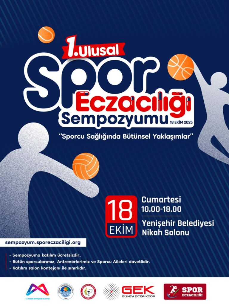 Mersin Eczacı Odası ve Spor Eczacılığı Akademi Platformu girişimleri ile birlikte Mersin Yenişehir Belediyesi’nin, Mersin Yenişehir Belediyesi’nin ve Güney Ecza Kooperatifi’nin değerli destekleri ile gerçekleşecek olan bu etkinlik Sporcu Sağlığı alanında farkındalık oluşturmayı amaçlayan ve tamamen gönüllülük esasıyla bir araya gelen kıymetli Uzmanlarımızın katılımlarıyla Mersinimize de değer katacaktır.